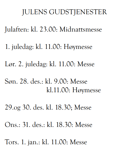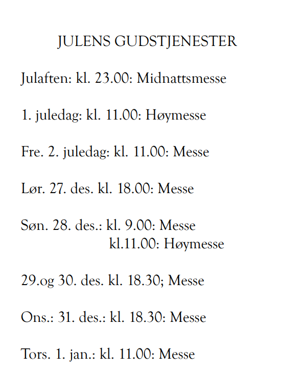 RORATEMESSE I KATARINAHJEMMETS KAPELL til levende lys, torsdagene 11. og 18. desember kl. 7.45. Inngang gjennom kjøkkenet. Etter messen frokost for studenter og unge voksne.